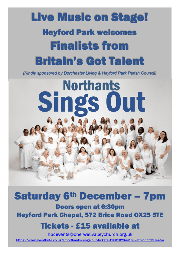 For further information or to buy tickets email hpcevents@cherwellvalleychurch.org.uk